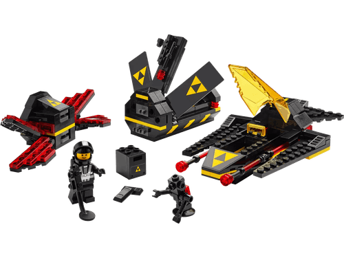 - The set includes an evil Blacktron and a Blacktron robot, which feature accessories such as a metal detector and a striker wrench